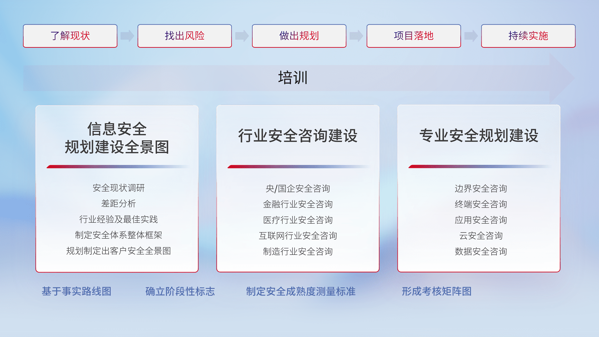 梳理客户信息安全现状调研、、、差距分析结果,,,结合行业先进经验及最佳实践,,,,制订客户的信息安全管控体系总结架构,,最终形成一个完整的客户信息安全规划与建设的全景图。。。