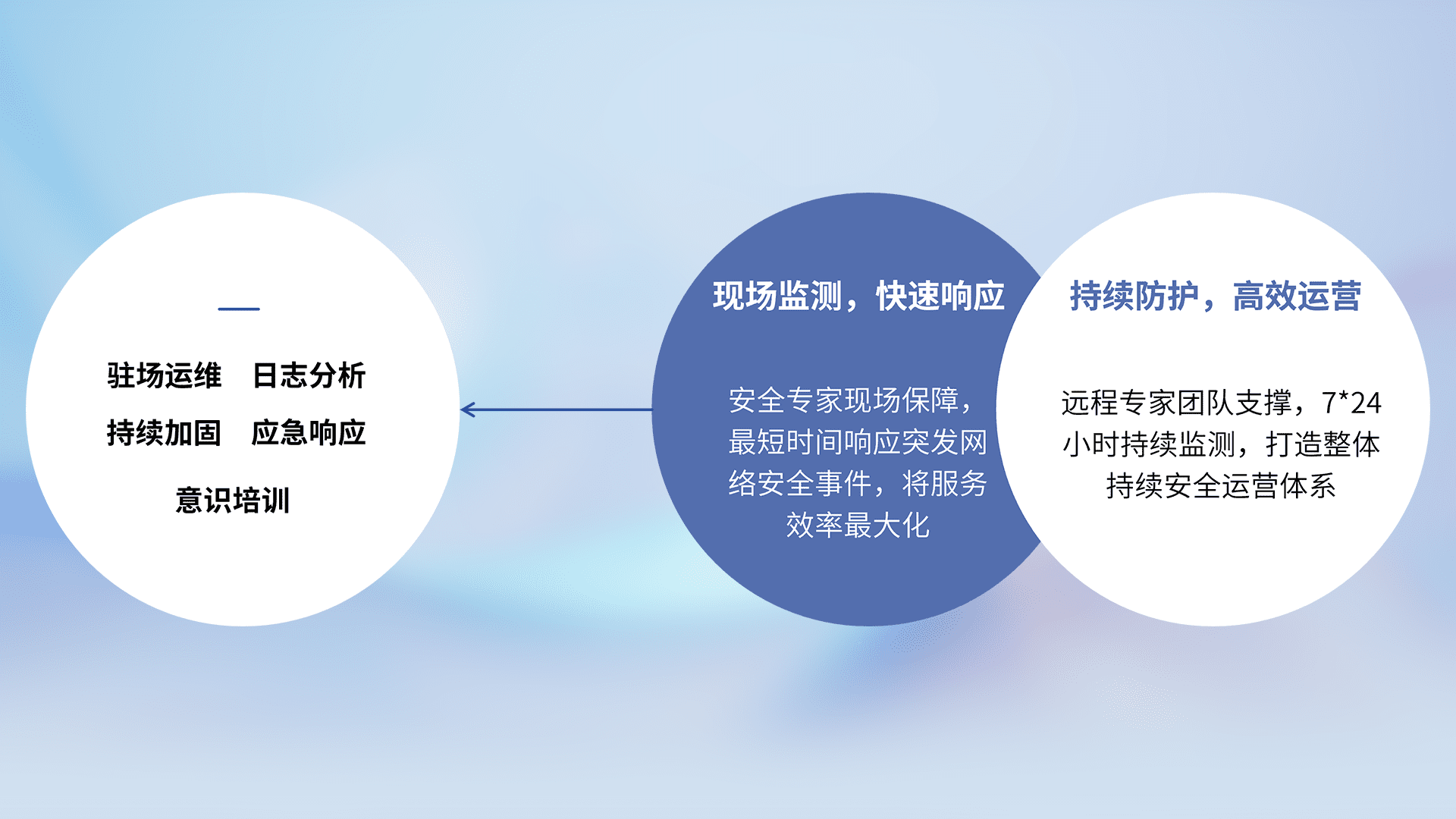 针对客户行业特性,,,提供专属的一站式安全管理服务,,,,帮助客户全面感知网络空间威胁,,,通过安全专家的线上、、、、线下防护支持,,实现风险闭环,,,,将安全保障常态化,,为客户打造常态化安全运维运营服务。。